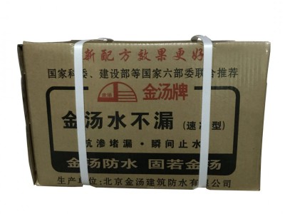 金汤水不漏是专门针对卫生间施工过程当中使用的一种甜品,这种聚合物高分子类的防水涂料是由多种水性聚合物合成的乳液,掺有各种添加剂等优质的水泥所组成的.聚合物树脂的柔性与水泥的刚性结合在一起,使金汤水不漏的属性会更加的稳定.在瞬间堵水方面表现是非常的优异的,金汤水不漏的特点就是施工起来非常的方便,而且综合整体的造价成本比较低廉,工期短,金汤水不漏所使用的一些材质又是一些无度无味的环保型的材质,作为我们日常生活当中使用的一种材质是一个不错的选择.卫生间防水是个很重要的大事.一定要再做卫生间防水设施的时候监督好,选择一些正规企业所生产的堵漏王,否则未来的卫生间有漏水发霉,产生异味的情况.